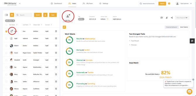 Within a few seconds, the scanned contact's profile will appear with a Digital Scan icon next to it. This icon helps you easily identify which profiles have been Digital Scanned, separating them from regular profiles.